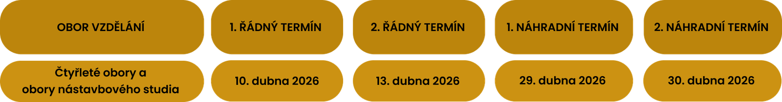 Jednotná přijímací zkouška se bude konat v termínech stanovených Ministerstvem školství, mládeže a tělovýchovy.